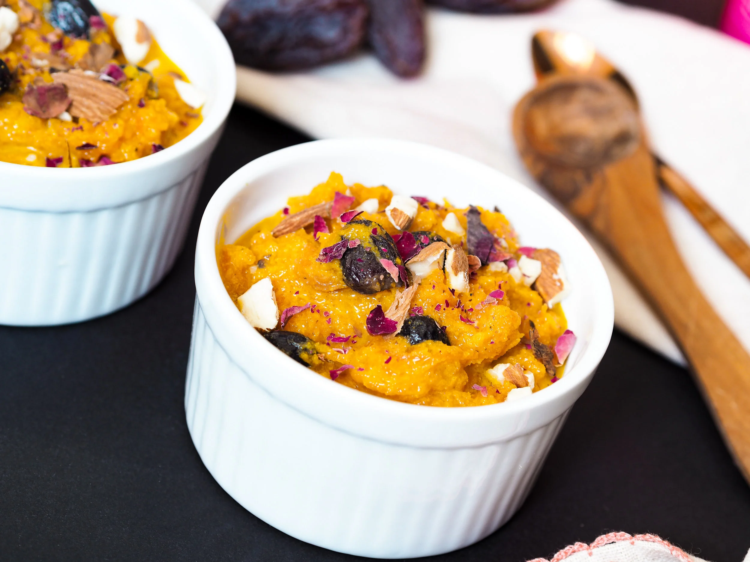 - When the liquid has reduced completely and the halwa has reached a thick consistency. Take it off the heat and let it chill.